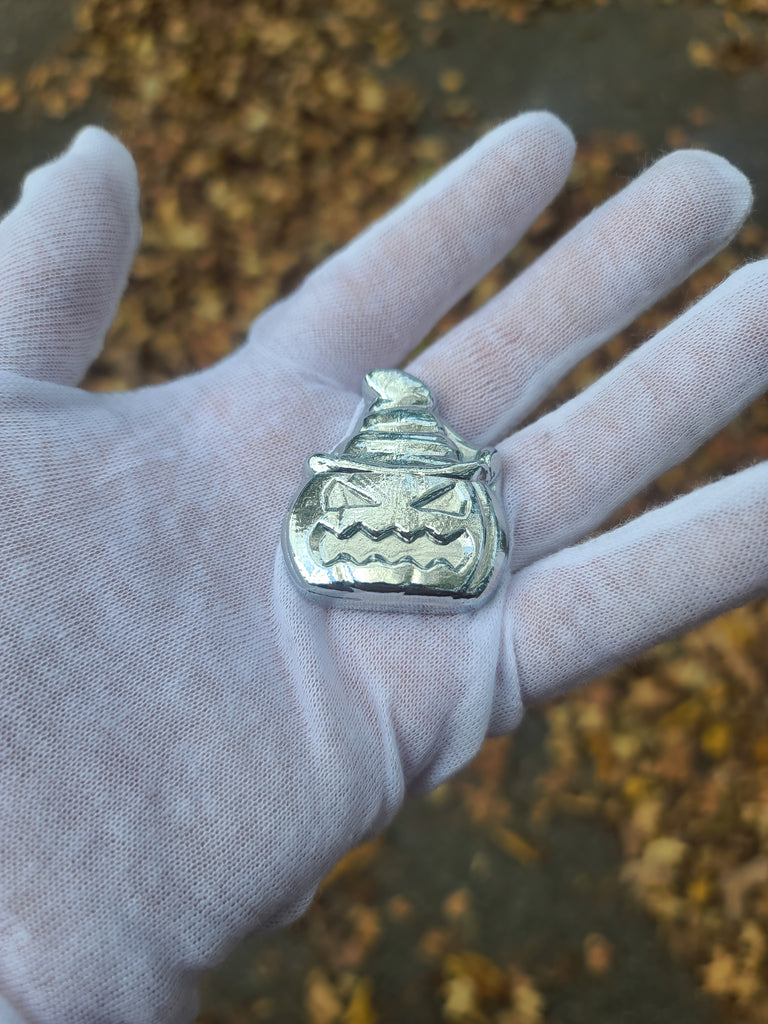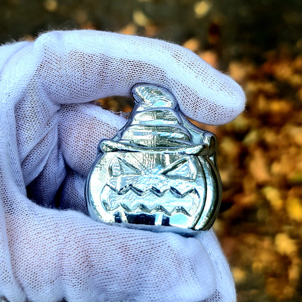 For those of you who want your .999 Zinc bullion with a little extra style we have an awesome Jack-ó-lantern. Each round is individually poured by hand, polished, and stamped with purity, metal, and a makers mark All rounds are double weighed with a high precision scale and each will average between 80 - 90 grams. Each round comes with a Certificate of Authenticity.